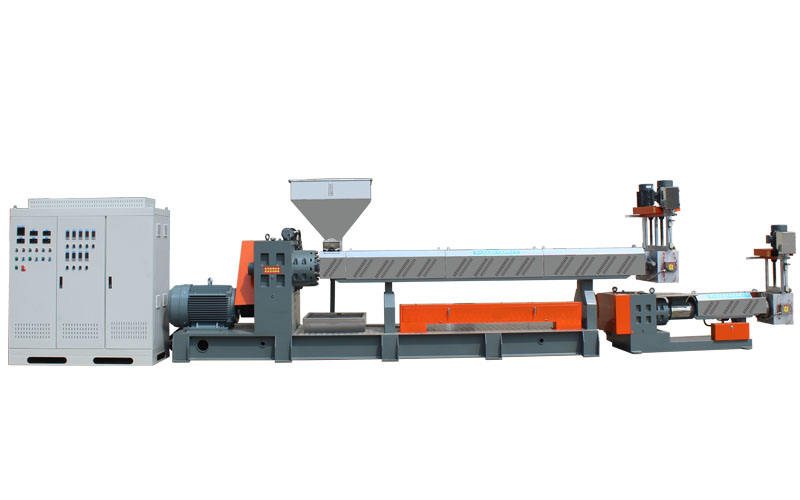 PVC類電線電纜絕緣和護套的塑料擠出是根據熱塑性塑料變形特性,使之處于粘流態進行的。除了需求螺桿和機筒外部加熱,傳到塑料使之融化擠出,還要考慮 螺桿擠出塑料時其本身的發熱,因此需求主機箱的溫度應從整體來考慮,既要考慮加熱器加熱的開與關,又要考慮螺桿的擠出熱量外溢的因素予以冷卻水,要 有有效的冷卻水設施。并需求正確合理的確定測量元件熱電偶的位置和安裝方法,能從控溫儀表讀數準確反映主機箱各段的實際溫度。以及需求溫控儀表的精 度與系統互相配合好,使全部主機箱溫度控制器的波動穩定度達到各種塑料的擠出溫度的需求。pvc塑料再生造粒機的控制系統包含加熱系統、冷卻系統及工序參數檢測系統,首要由電器、儀表和執行機構(即控制柜和工作臺)組合而成。其首要功能是:操縱和調節主輔機的滑動電動機,輸出合乎工序需求的轉數和輸出功率,并能使主輔機協調工作;檢測和調節機中塑料的溫度、壓力、流量;實現對全部機組的操縱或自動控制。擠出機組的電氣控制大致分為傳動操縱和溫度控制兩大部分,實現對擠塑工序包含溫度、壓力、螺桿轉數、螺桿冷卻水、機筒冷卻水、工藝品冷卻水和直徑的操縱,以及牽引帶速度、工整排線和確保收線盤上從空白光盤到滿盤的恒張力收線操縱。
